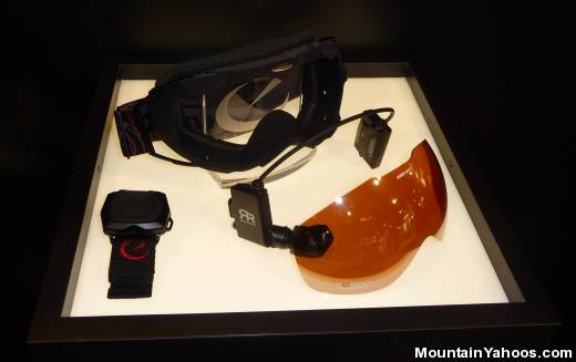 Recon Instruments: Displays time, temperature, altitude and speed. Options to recall distance and your mountain stats. Can download information to your computer to plot your trail on Google Earth. Interfaces with Droid app for buddy tracking.
