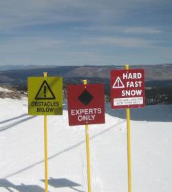 The mountain is indeed "Mammoth" with over 3,500 acres of skiable terrain. It packs in 28 lifts, four ski lodges, a vertical rise of 3,100 feet and an average snowfall of over 33 feet per year. Winds will often close the top of the mountain with the more advanced steeps. You can find the most challenging and steepest terrain under lift 22 which is sheltered from the wind and thus not subject to the same closings. The Mammoth crowd travels from Los Angeles and San Diego where it continues its beach party style and attitude. Check out Tusk's, Yodler or Austria Hof for "apres ski".