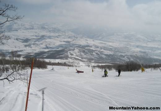 Snowbasin has over 3000 acres of skiable terrain with about a 3000 vertical feet drop. Most of the resort is located on one side of the mountain, with the most difficult terrain at the top, and the easier terrain at the bottom. The view of Snowbasin is scenic and spectacular when looking at the face of the mountain with its jagged peaks at the top. The peaks are actually so steep and un-skiable that the lifts don't go all the way to the top, however, there are some which can be reached by a short hike from many of the lifts. Although there is terrain for every skier here, this is a resort with difficult terrain that expert skiers will enjoy the most.